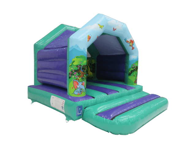 This amazing NEW Jungle Castle 12x12ft will really give you the feel of being in the jungle, with the green and purple colour theme and the amazing hand painted artwork of animals, it will really look and feel like your bouncing in the middle of the amazon.