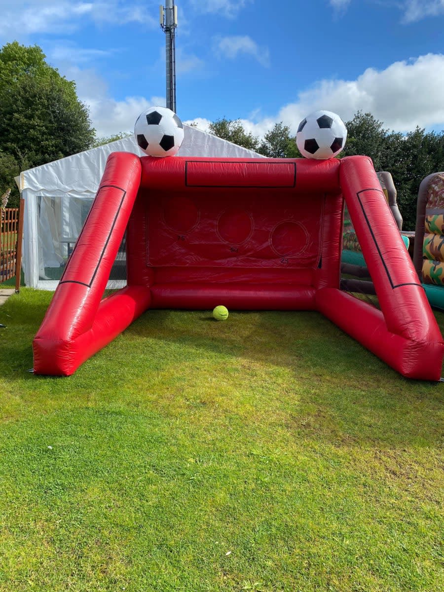 Dive into the excitement of football at your next event with the Red Penalty Shootout, a thrilling inflatable game brought to you by King of the Castles. This game is a must-have for football enthusiasts and fun-seekers alike, offering a spirited challenge that's perfect for guests of all ages. Participants are invited to test their skills by aiming to score goals against the backdrop of a vibrant red inflatable, designed to mimic the adrenaline-pumping experience of a real penalty shootout. Whether you're hosting a birthday party, a community event, or a corporate gathering, the Red Penalty Shootout is guaranteed to add an element of competition and enjoyment.