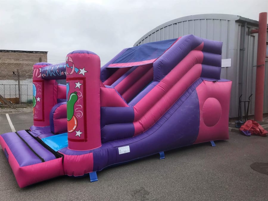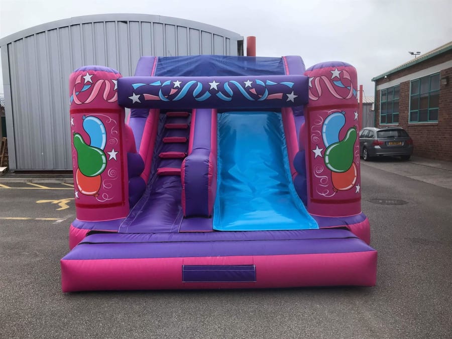 Designed with a 6ft platform and adorned with balloons and streamers, the slide's pink and purple colour scheme adds a vibrant, joyful touch to any event. It is perfect for: