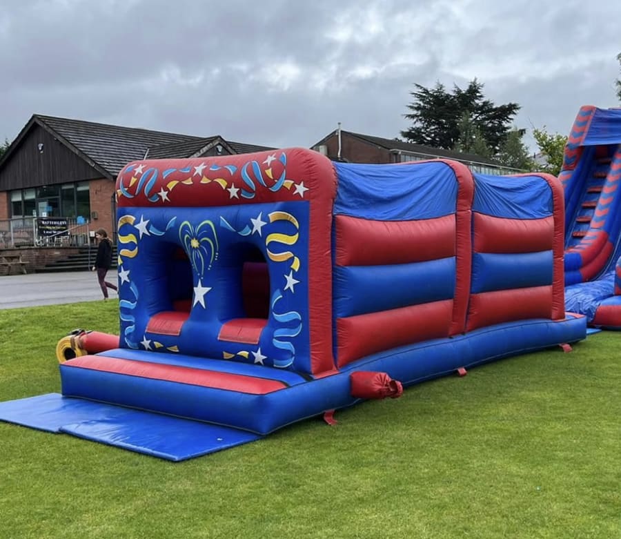 Whether you're hosting a birthday party, community gathering, or corporate event, the Blue & Red Slide Assault Course (10ft Slide) is guaranteed to be a crowd-pleaser. It's not just a slide; it's an entire experience that brings joy and laughter to participants of all ages. 🥳