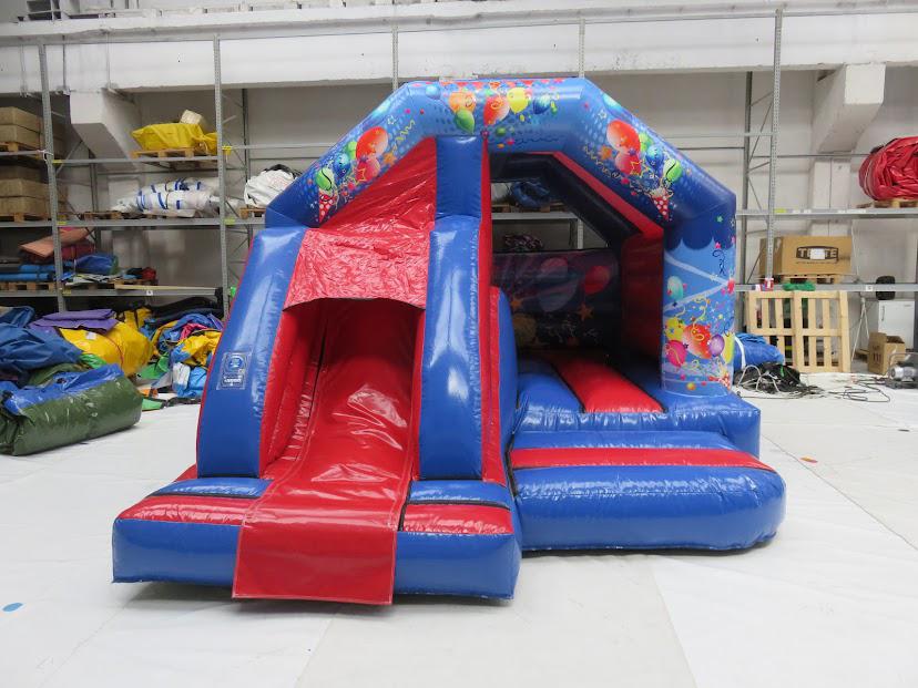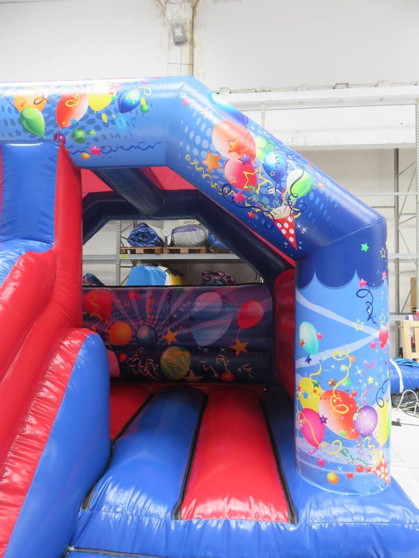 NEW for 2021...Let's Party Bounce & Slide, with a front positioned slide...more suitable for long narrow gardens.