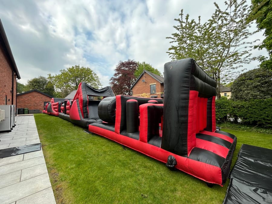 Our assault course hire service delivers the Ultimate 100ft Assault Course with 12ft Slide in Stockport, Manchester, Bolton, Bury, Oldham, Rochdale, Tameside, Warrington, and Wilmslow. We pride ourselves on professional delivery and setup, ensuring a hassle-free experience from start to finish.