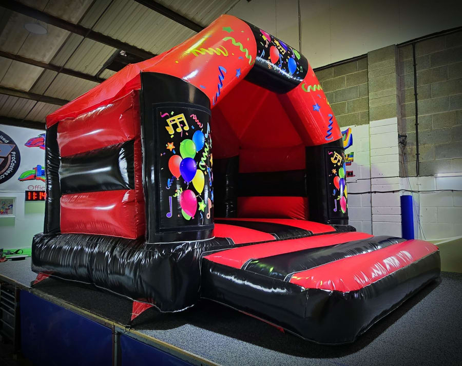 The Red & Black Party Time Bouncy Castle stands out with its bright colours and playful design, inviting children and guests to enjoy hours of bouncing fun. The lively balloons and streamers motif adds a touch of celebration, setting the mood for a joyful event. Its bold red and black colour scheme not only looks great but also attracts attention, ensuring it becomes a focal point of your celebration.