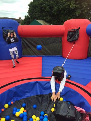 Inspired by the popular children’s game of Hungry Hippos, King of The Castles brings you our version of a high energy and competitive collecting game. DASH forward from your station and GRAB the balls from the central pit. Play against your friends to see who will be champion in this brilliant inflatable challenge! Ready to be hired out now! Colours may vary.