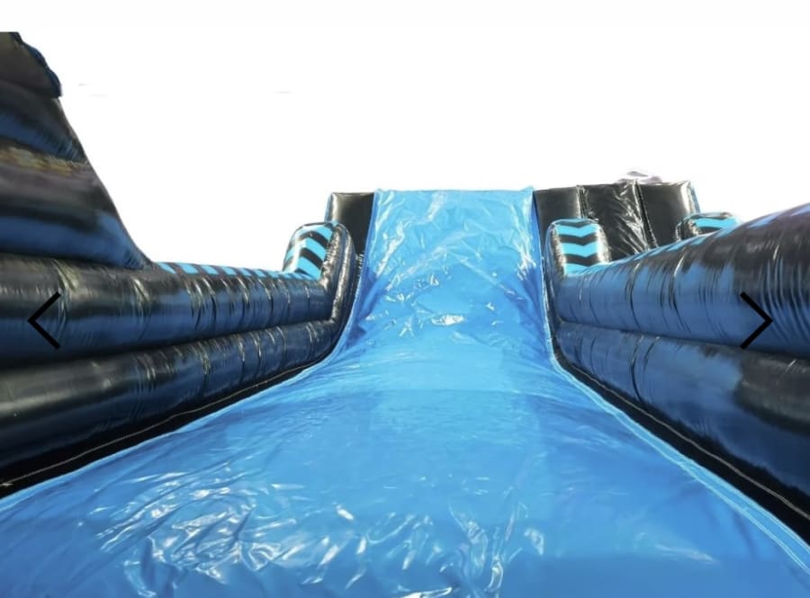 How FANTASTIC is our NEW 12ft Blue & Black Rush Slide? Who wouldn't want this SHOW STOPPER at their birthday party or event! The saying go BIG or go home, definetly comes to life in this amazing inflatable slide! With one lane going up and two coming down, it is great fun for all ages! Adults can even give this one a go.
