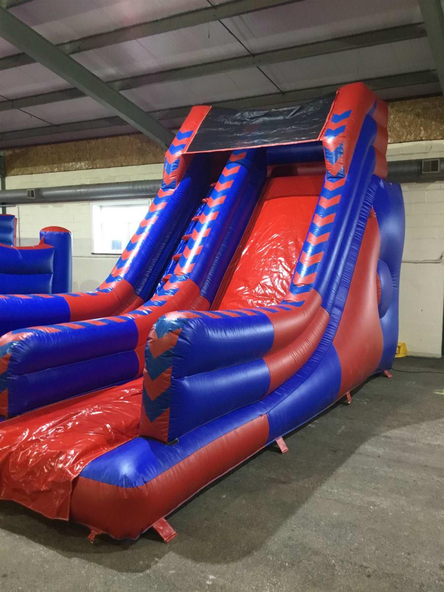 Experience the Red & Blue Rush Adventure on the Blue & Red Rush Slide Bouncy Castle in Tameside- Manchester- Bolton- Bury- Rochdale- Oldham- Stockport- Cheshire